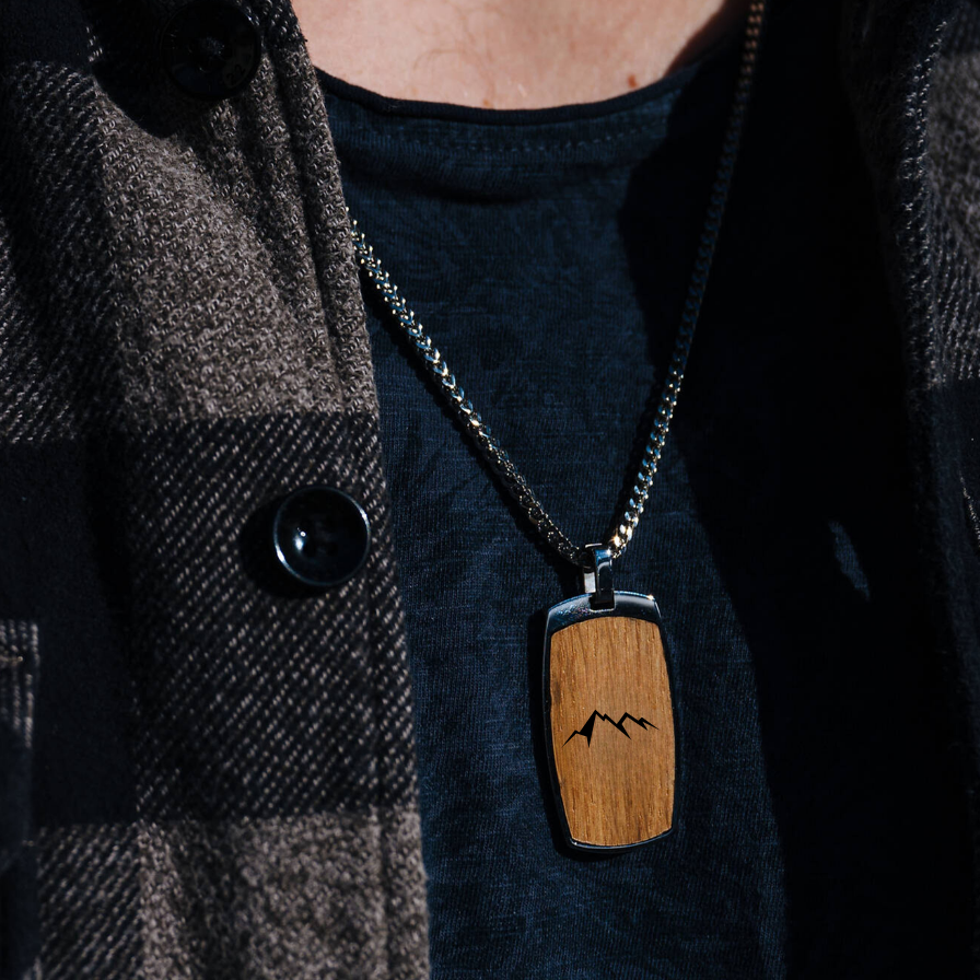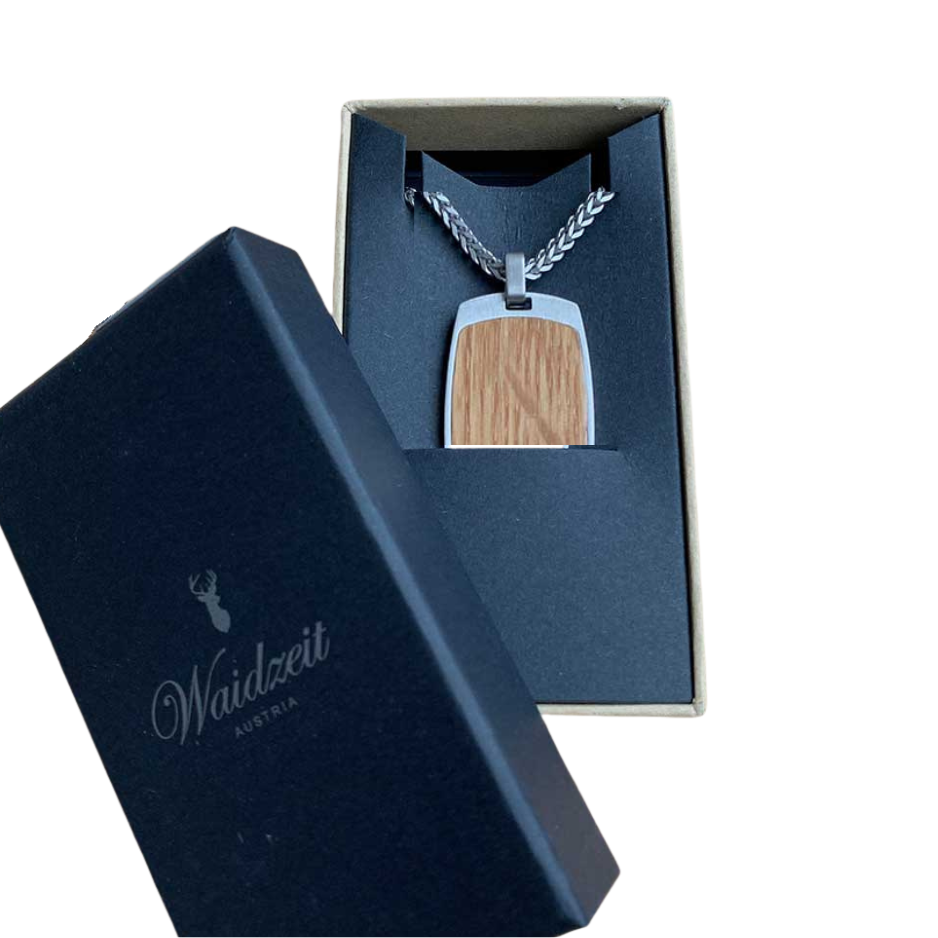 - Edelstahlkette mit heimischem Mooreichenholz in der Länge 60 cm